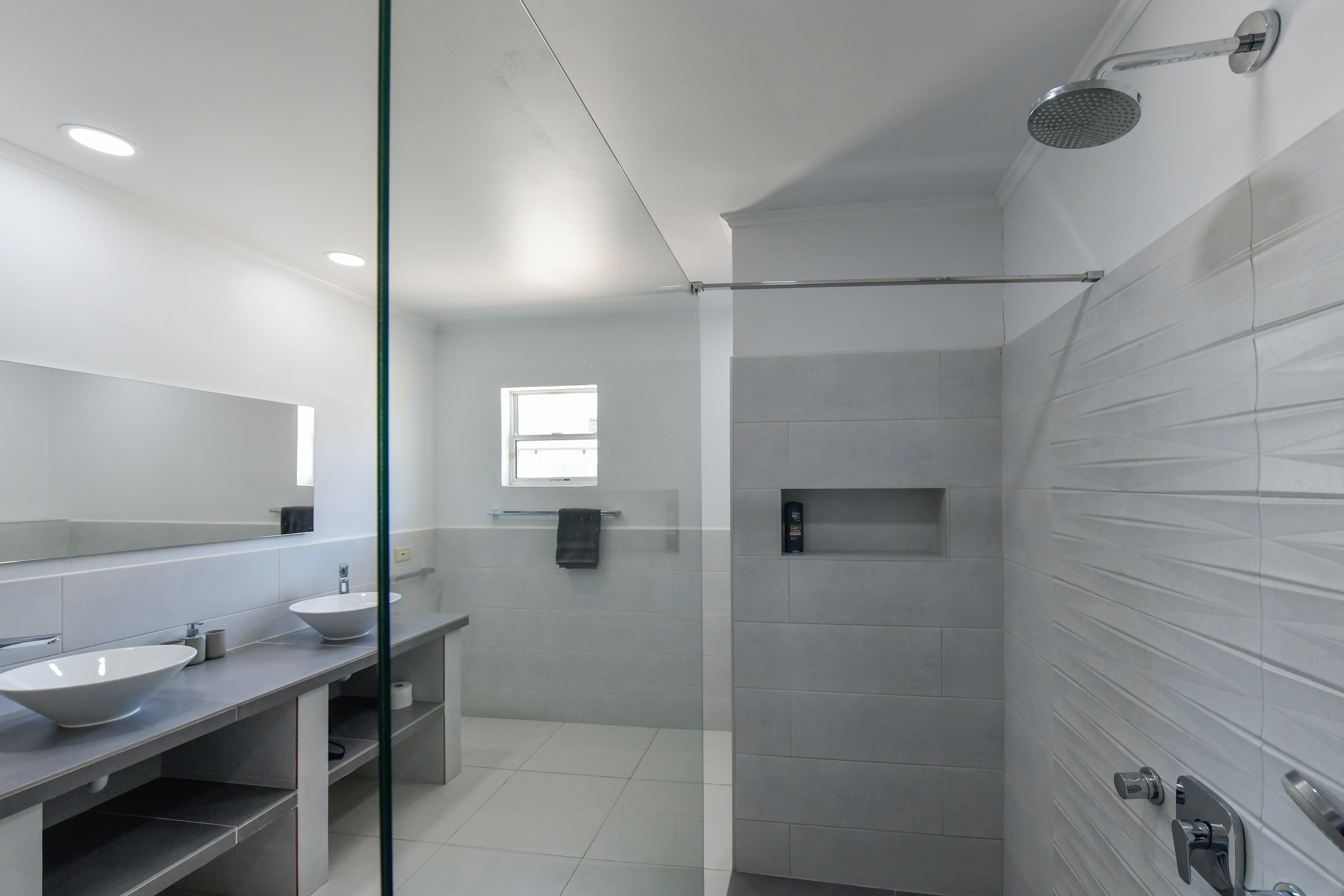 De woning is voorzien van 3 badkamers en 3 slaapkamers. De grote slaapkamer is voorzien van 2 tweepersoonsbedden waar een afscheiding tussenin staat.